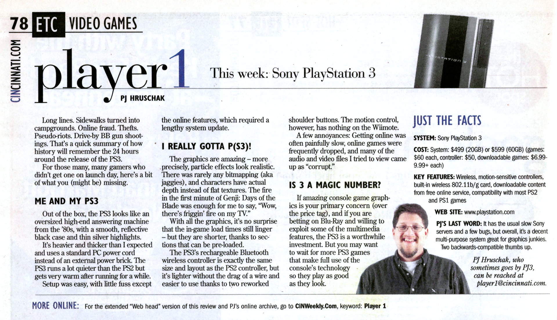 I received three games pre-lanch: Genji: Days of the Blade, NBA 07 and Resistance: Fall of Man. The PS3 library already seems to be filling out pretty well with sports and action games, obviously targeting older gamers. Of course the Playstation archives still makes the PS3 the system with the most playable games at launch. Gotta love backwards compatibility.