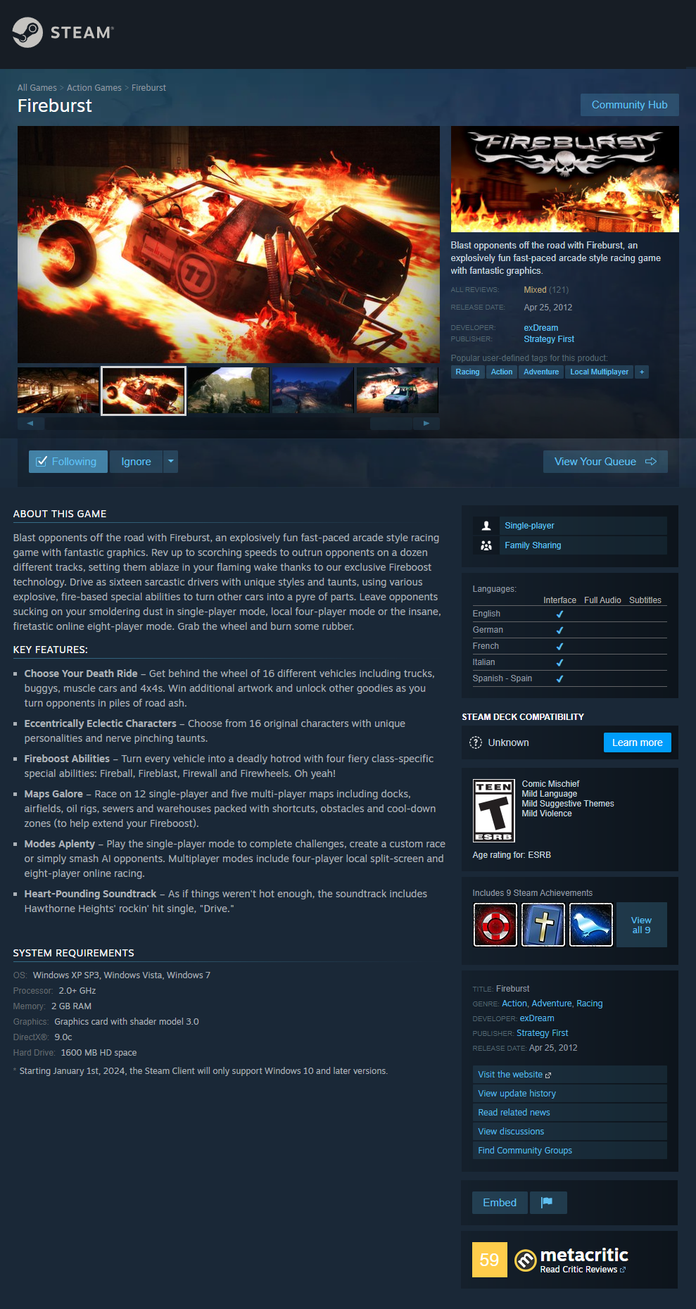 The explosive combat racing game Fireburst was released on multiple platforms, and much of the production was finished when I took over the marketing. I wrote the marketplace and store descriptions for this game, as well as some social media, press releases and other goodness. We worked with Strategy First to get it published on Steam, and I helped manage that listing for a while as well. We had more plans for this game as well - including some crazy off-course challenges - but, sadly, we didn't get a chance. Even though Strategy First now manages this listing, the copy looks like it hasn't changed.
