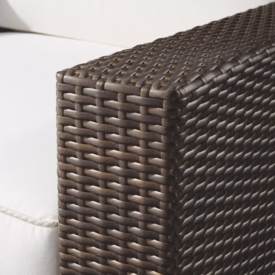 Frontgate uses high-performance, all-weather, high-density polyethylene (HDPE) resin wicker for all of our wicker outdoor furniture.