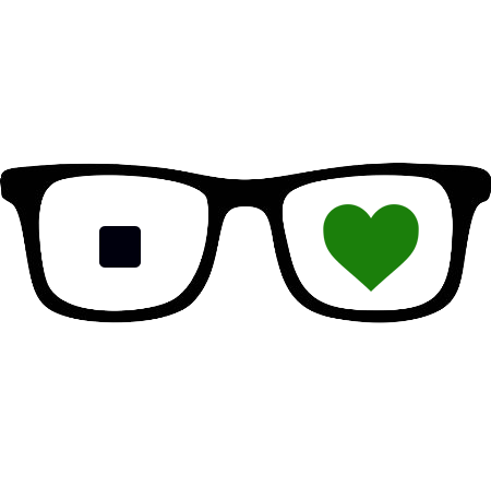 So, here's the icon I created for Nerdecessities featuring iconic black-framed nerd glasses, a pixel for one pupil and a green heart as the other, signifying an envious love for all things nerd.